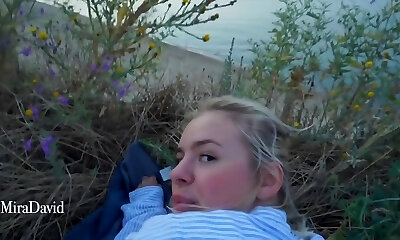 Beauty with a nice ass climbs the mountains to wank