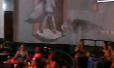 Horny brunette stripper shows off fun bags and gets pussy fucked from behind