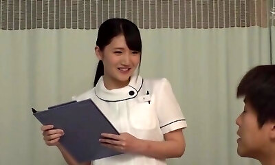 淘气的男人香肠骑通过一个很酷的日本护士在医院的沙发上