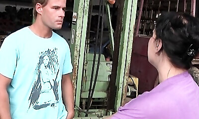 Jaw-dropping mom fucks strong boy