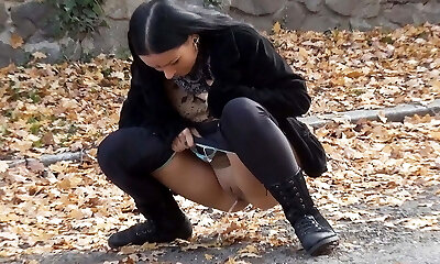 HAIRY CHUBBY BBW Pees OUTSIDE - LEDA LAVANDULA - PISS FETISH