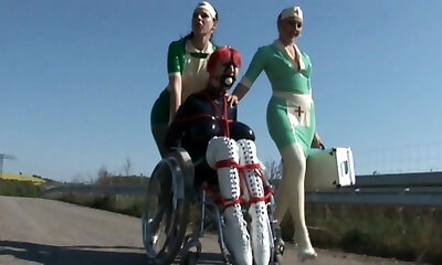 skąpa pacjentka cierpi na alergię na lateks, a także dwie gumowe pielęgniarki mogą jej pomóc w centrum medycznym