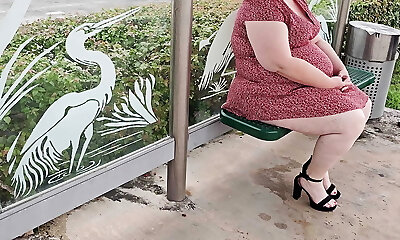 зрелая домохозяйка размером с батат в красном чулке обожает возиться с игрушкой на перилах сверху