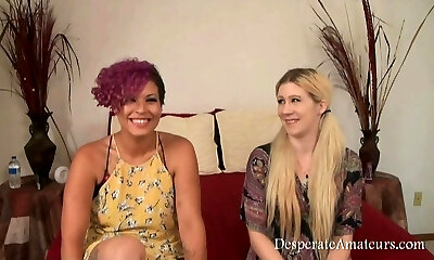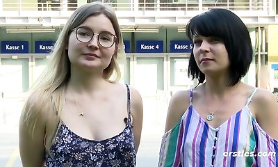трехсторонний кастинг первого таймера с двумя супер-милыми дамами