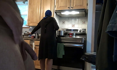 震惊但好奇! 一个害羞的阿拉伯女仆抓住了我抽风,让我让她摸我的未切割的家伙