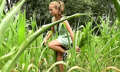 我拉出我的轴在一个公共公园的小鸡面前和暨在她的脸上