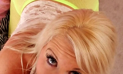 Towheaded奶奶显示她的dinky吹能力到一个黑人